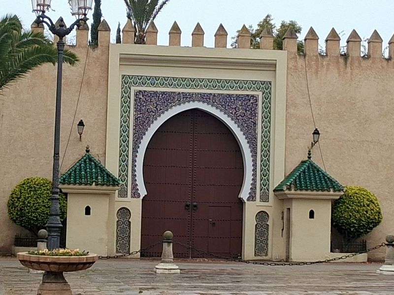 Das Wetter bringt das größte Kontrastprogramm, heute regnet es und ist kühl. Um 9 Uhr bringt uns der Bus nach Fes, zunächst zum Königspalast. Auch hier kann man nur das Portal bestaunen.