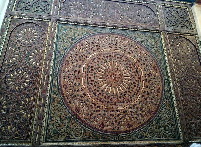 Eine Stunde dauert die Fahrt nach Meknes, dann fährt der Bus durch ein Stadttor und zwischen 2 Stadtmauern schlängelt sich die Straße Richtung Zentrum. Wir begrüßen den heutigen Guide, der uns zunächst durch die Kasbah führt. Dank Ramadan sind die Gassen wie ausgestorben, verwinkelt und sehr eng, ideal für heiße Sommermonate. Die Türen und Portale sind häufig im maurischen Stil gebaut und reich mit Mosaiken verziert.