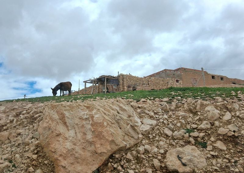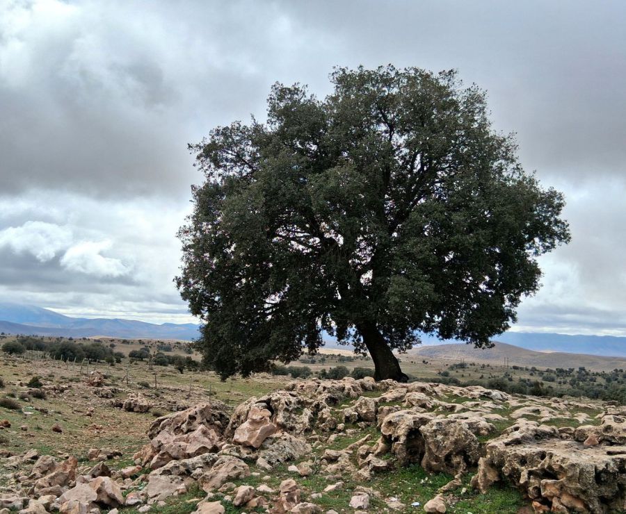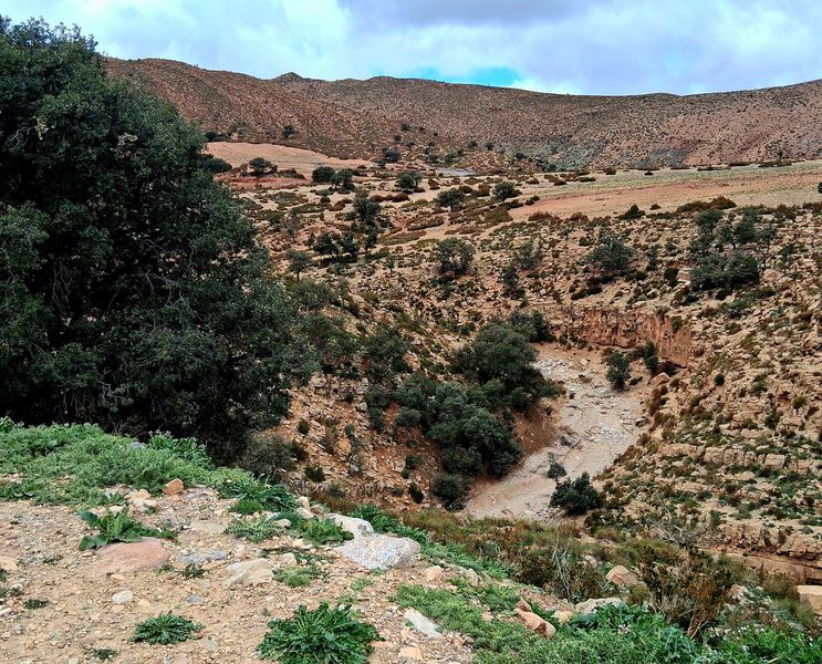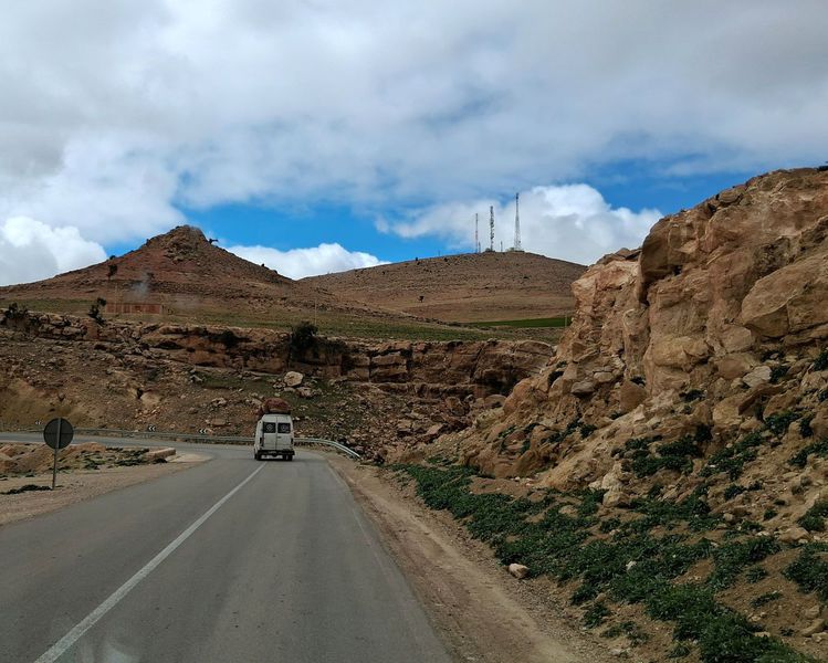 Es hat in der Nacht geregnet und am Vormittag schüttet es teilweise immer noch. Der Einkauf und das Tanken sind schnell erledigt. Nach etwa 20 km haben wir Fes hinter uns gelassen, es geht in Richtung Berge. Es wird leicht hügelig, den ersten Ort durchfahren wir schnell, denn es regnet immer noch. Dann fängt die Steinwüste an.