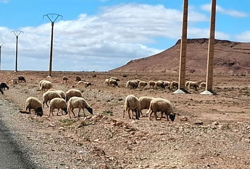 Wir kommen uns vor wie Analphabeten! Arabsch, französisch und oft auf berberisch steht auf den Schildern. Außerdem laufen auf der Autobahn Fußgänger herum, Kinder spielen, Händler bieten Kartoffeln und Gemüse an. Man sieht jede Menge Schafherden. Aber wenn man irgendwo unsicher ist, bekommt man sofort Hilfe angeboten, die Menschen sind extrem freundlich und hilfsbereit. Abends sind alle froh, den Tag gut überstanden zu haben. Nach einem Absacker wollen wir nur noch eine ruhige Nacht haben.