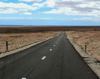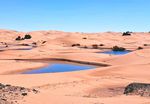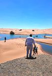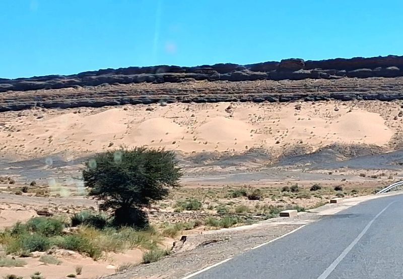 Wir besuchen eine Mine, wo der Basalt abgebaut wird. Ob man eine Edelsteindruse oder einen Ammoniten findet, ist Glücksache. Richtung Sanddünen tauchen ein paar kleine Seen auf, die im letzten Winter nach einem starken Regen entstanden sind. Hier wächst auch tatsächlich etwas Gestrüpp und eine Dattelpalme.