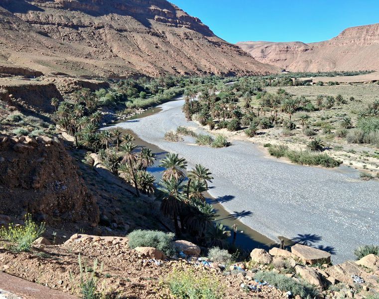 Dann beginnt die Schlucht. Der Ziz führt nur wenig Wasser, aber die Landschaft ist grandios. Dann gibt es auch noch „heiße Quellen“, sie sind eher lauwarm.