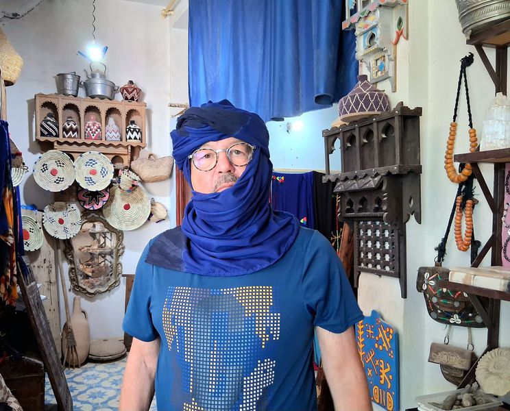 Einen Kaffee genehmigen wir uns auf einer hoch gelegenen Terrasse mit schönem Blick über den Ort und die Stadtmauer. Den Abschluss bildet ein Gang durch die Medina, noch verwinkelter und enger als die Kasbah. Man muss zusehen, dass man den Anschluss an die Gruppe nicht verliert, denn sonst ist man verloren.