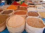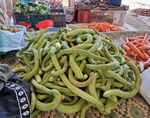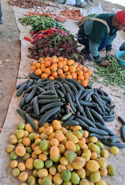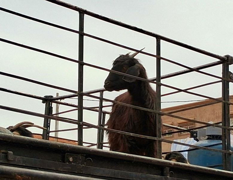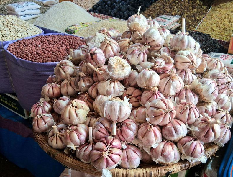 Die Straßen werden immer voller, es fahren Pickups herum, die auf dem Dach ein paar Ziegen transportieren. Mit Glück finden wir einen Parkplatz, dann geht es auf ins Getümmel. Die Läden in der Straße sind kurmelich wie üblich, dann geht es durch eine schmale Gasse, hinter uns drängeln schon ein paar Autos und Motorräder. Der Markt ist riesig und bietet von Gemüse und Obst über Kleidung, Fleisch auch lebende Tiere. Nach einer Weile reicht es uns, wir fahren weiter.