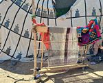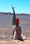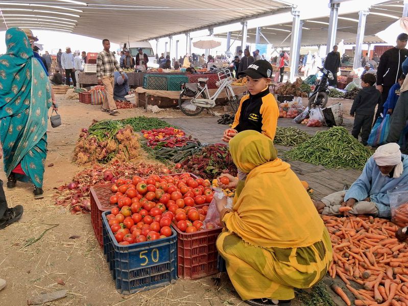 Die gleiche Wüste wie gestern für die ersten 100 km. Dann kommt ein Ort, wo am Samstag, also heute, ein Markt stattfindet.