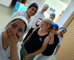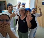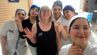 Die Nacht verlief endlich mal erholsam für Rüdiger, er hat selbst den nächtlichen Medikamentenwechsel verschlafen. Am Morgen erhalte ich ein üppiges Frühstück – nicht für Rüdiger – und dann frage ich höflich, ob ich die Damen mal fotografieren darf. Die Party geht weiter mit Handy-Nr.- und Bilderaustausch.
