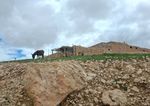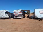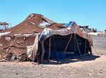 Beim Frühstück haben die Amerikanerinnen, die gestern Abend mit viel Tamtam angereist sind, das Buffet reichlich geplündert, aber zum Glück gibt es noch Kaffee und wir werden satt genug für den Start in den Tag. Die Jeeps holen uns wieder ab, nach 15 Minuten sind wir am Camper und starten auf die nächste Etappe. Von der Fahrt gibt es nicht viel zu berichten, ein Ort, wo wir ein Tuch für Rüdiger kaufen, sonst sind es immer die gleichen Steinwüsten. Zum Glück stehen ein paar Hotelangestellte dort, wo die schmale Einfahrt zu unserem Stellplatz ist. Für eine Nacht reicht das.