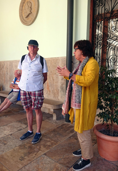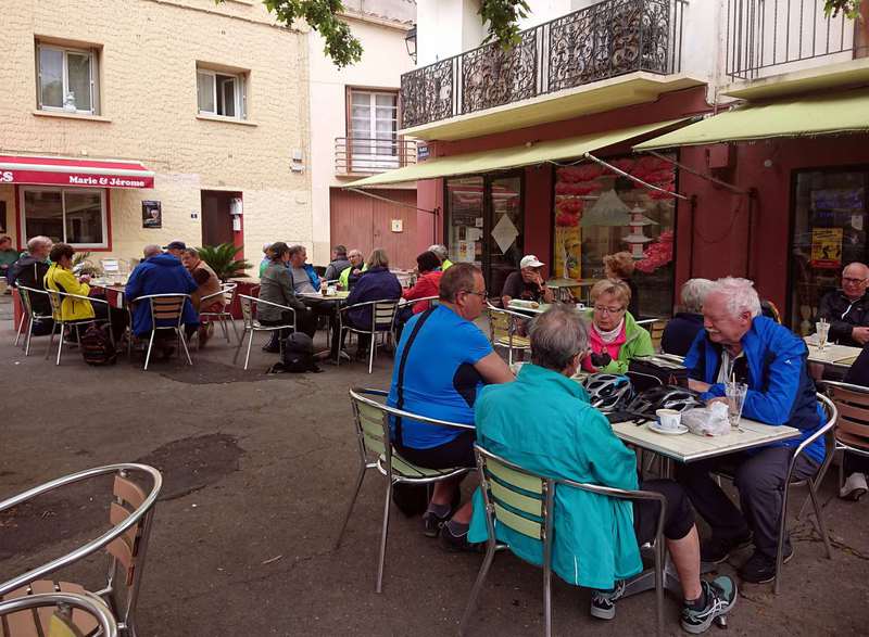 Mittwoch ist die erste gemeinsame Radtour geplant, es geht zur Klosterbesichtigung nach Saint-Genis. Mit 30 Radlern in einer Reihe ist die Gruppe doch sehr groß, zum Glück haben wir heute immer Radwege, aber es wird gleich beschlossen, dass wir künftig in mehreren Gruppen fahren. Das Kloster hat die Besonderheit, dass im Kreuzgang 3 verschiedene Arten von Marmor verarbeitet wurden, rosa, weiß und grau. Dann gibt es noch eine kleine Ausstellung mit Gemälden, das Stück für 2800 € zu erstehen. Nachmittags fahren Einige noch nach Collieure, das haben wir hinter uns, den Tumult brauchen wir nicht nochmal.