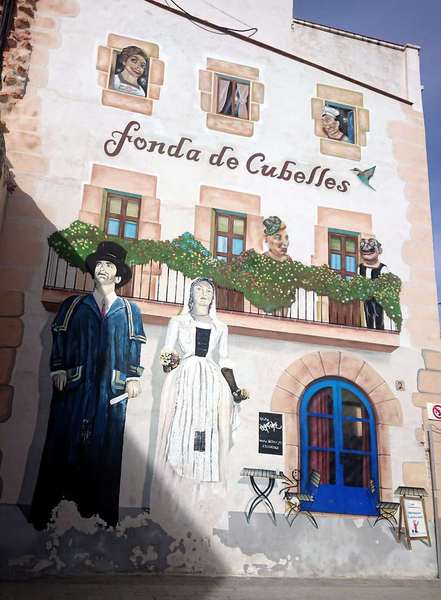 Der erste Campingplatz in Spanien ist recht groß – wie die künftigen meistens auch – etwas vom Strand entfernt, direkt neben einem Holzhandel. Das ist etwas störend, da man die ganze Zeit die Sägen hört. Nach der Ankunft tun wir uns eine kleine Testtour an. Jeroen möchte die Radtour für morgen vorbereiten und so geht es flott Richtung Küste. Auf dem Rückweg sehen wir mitten im Ort ein paar schöne Wandmalereien, dann geht es wieder Berg auf zum Campingplatz. Abends wird das Begrüßungsessen zelebriert, recht üppig und mit über 30 Personen ziemlich laut.