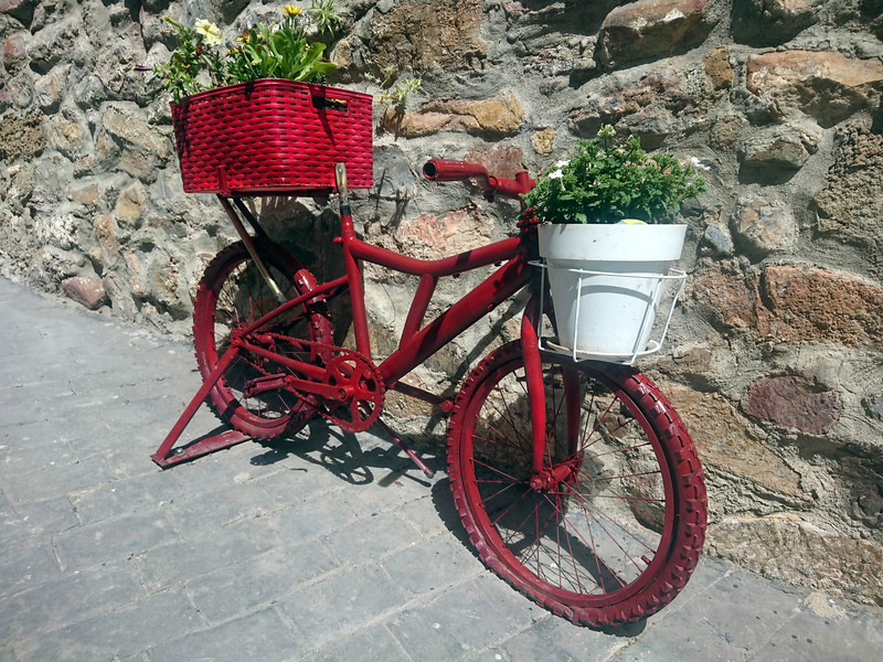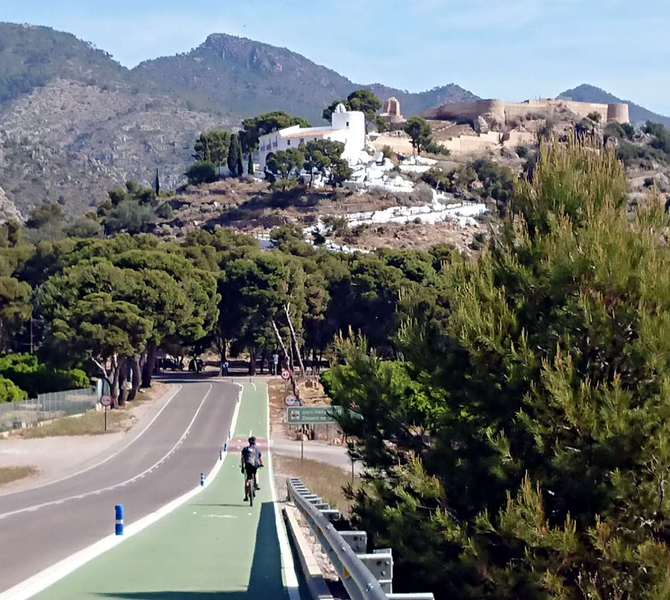 Sonntag fahren wir an der Küste entlang Richtung Benicassim, durch den Ort ist es nicht schön, aber dann gibt es eine Bahntrasse, die nur für Radler und Fußgänger gedacht ist. Heute – am Tag vor dem Feiertag – ist hier Slalomrennen angesagt, schade, dass es so voll ist, so kann man die Strecke nicht wirklich genießen. In Benicassim angekommen gibt es eine kurze Kaffeepause, dann trennen wir uns von der Gruppe und fahren Richtung Hügel.