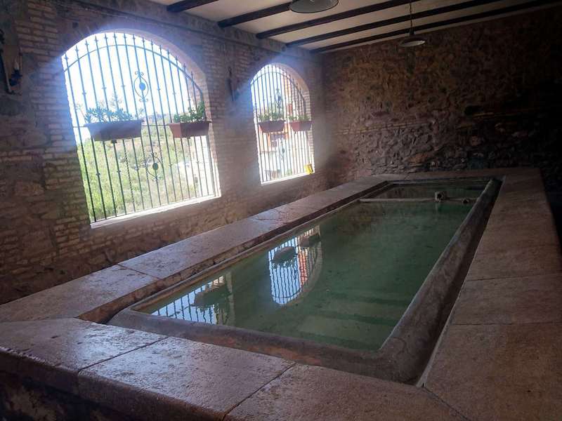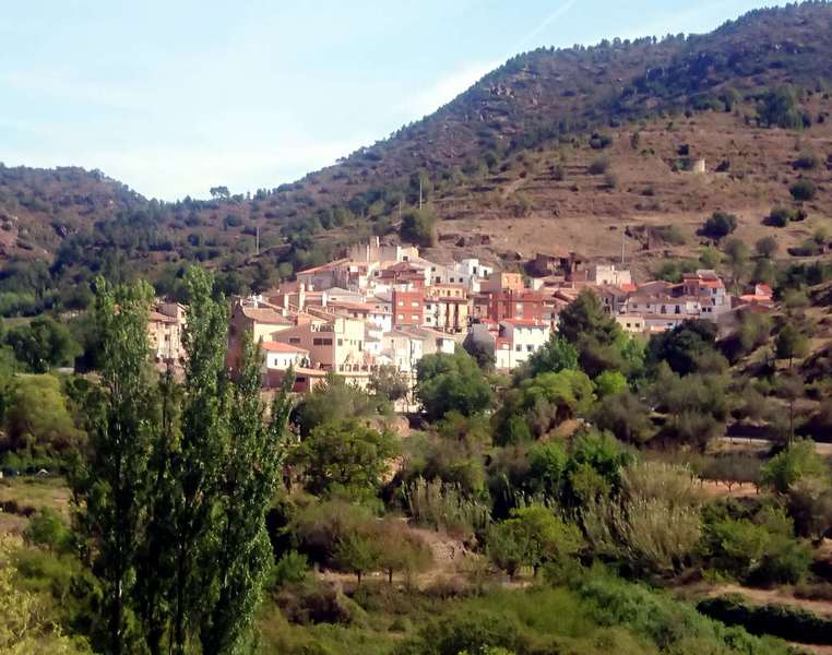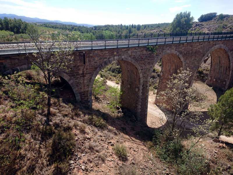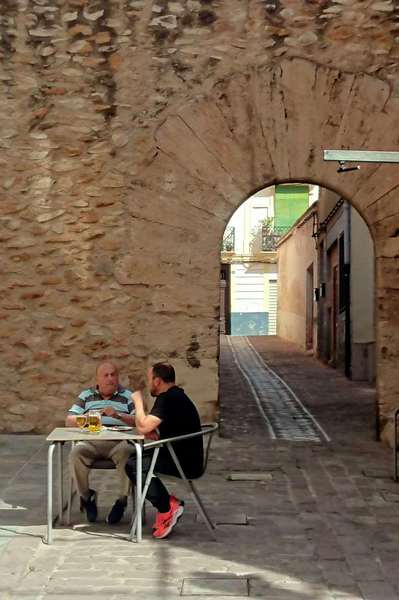Freitag ist eine Wanderung zum Wasserfall angesagt, laut Auskunft ist der aber vertrocknet. Deshalb begeben wir 4 uns auf eine große Bergtour, da es morgen ja wieder an den Strand geht. Über die Bahntrasse gewinnen wir schnell einige 100 Meter an Höhe. In dem Ort der Kaffee- und Kuchenpause geht es ab ins Gebirge. Die Straße ist wieder herrlich leer und windet sich durch eine Waldlandschaft. In Higueras sind wir auf ca. 700 Meter Höhe. Der Ort soll schöne Fotomotive enthalten und meine Karte zeigt „Messer und Gabel“ an. Also probieren wir es, wollen schon wieder umdrehen zur Weiterfahrt, da kommen 3 Handwerker aus dem Ort, zeigen uns den Weg zum Restaurant. Bei Andreas ist die Lampe beim Fahrrad abgebrochen. Kein Problem, einer der Handwerker nimmt ihn mit zu seiner Garage, 2 Kabelbinder und der Schaden ist behoben. Wir trinken etwas und erhalten als Snack stark gesalzene Erdnüsse, die bringen verbrauchte Mineralien sofort zurück. Dann gehen wir noch durch den Ort, der sehr hübsche Häuser und schöne Fotomotive bietet, unter anderem gibt es einen alten Waschplatz mit Gitterfenstern ins Tal hinunter. Durch den nächsten Ort rollen wir nur durch, dann geht unsere Tour von der Straße ab auf eine Naturpiste, traumhaft schöne Abfahrten. In Matet entscheiden wir, die etwas längere Strecke nach Segorbe zu fahren und kommen glücklich und mit schweren Beinen wieder in Navajas an. Heute Abend gibt es wieder ein ACSI-Essen, reichlich und laut.