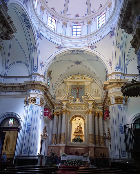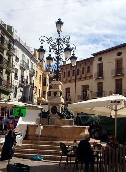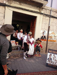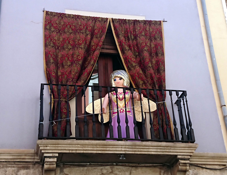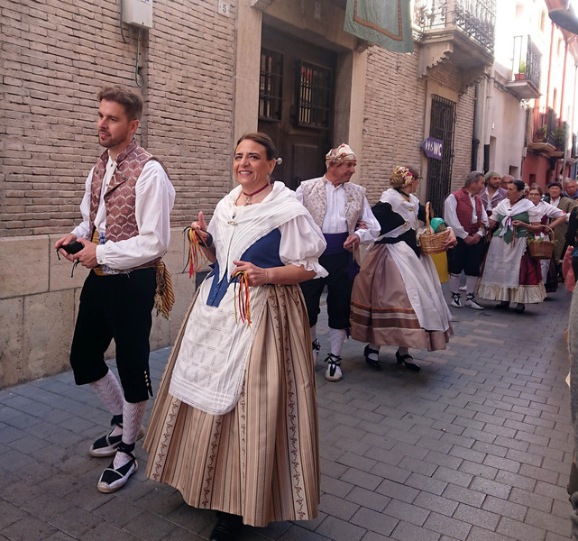 Auf der Fahrt nach Valencia nehmen wir uns etwas mehr Zeit für eine Besichtigung. Wir suchen uns den Ort Castalla aus, rein zufällig, aber das ist eine gute Wahl. Im Ort angekommen sehen wir, dass hier wohl ein Fest vorbereitet wird. Eine Straßenmeile mit Karussells, Buden, Raupen und dergleichen durchqueren wir. Dann geht es zur Kirche über Treppen hinauf. Dort erleben wir eine besondere Überraschung. In der Altstadt kommen aus einem „Museum“ fröhliche Menschen jeden Alters in Trachten und ziehen mit Musik durch die engen Gassen. Es sind Buden mit Kunstgewerbe aus Holz und Leder aufgebaut, ein Stand mit Fächern und jede Menge Essensstände. Es durftet herrlich nach Gewürzen, Geräuchertem und gebratenen Köstlichkeiten. Das ist mal wieder etwas ganz besonderes.