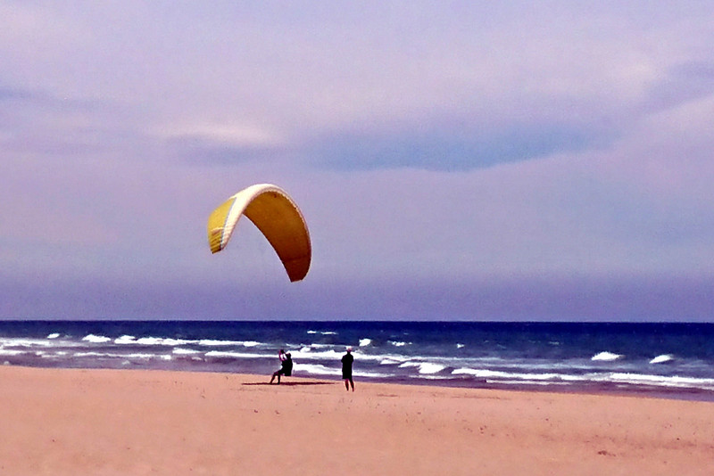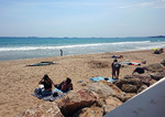 In der Nacht zum Sonntag hat es etwas geregnet, am Morgen ist es noch bewölkt. Wir fahren gemütlich über Radwege nach Gandia. Es gibt viele Wasserläufe, Schilf und einen kleinen Teich mit Park. Für die Picknickpause ist es noch zu früh, deshalb geht es kurzer Hand an den Strand, ein idealer Platz für eine Pause. Die Sonne scheint und jeder nimmt sein Picknick-Päckchen und sucht sich einen Platz.