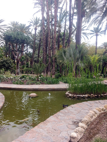 Die nächstgrößere Stadt ist Elche, bekannt für seinen Palmengarten. Den besuchen wir natürlich auch noch. Allerdings ist der Weg dorthin nicht sehr schön, viel Straße und geradeaus und dazu noch Regen. Die Besichtigung des Palmgartens ist schon etwas Besonderes. Neben den vielen Plamen sind auch sehr stolze Pfauen zu bewundern.