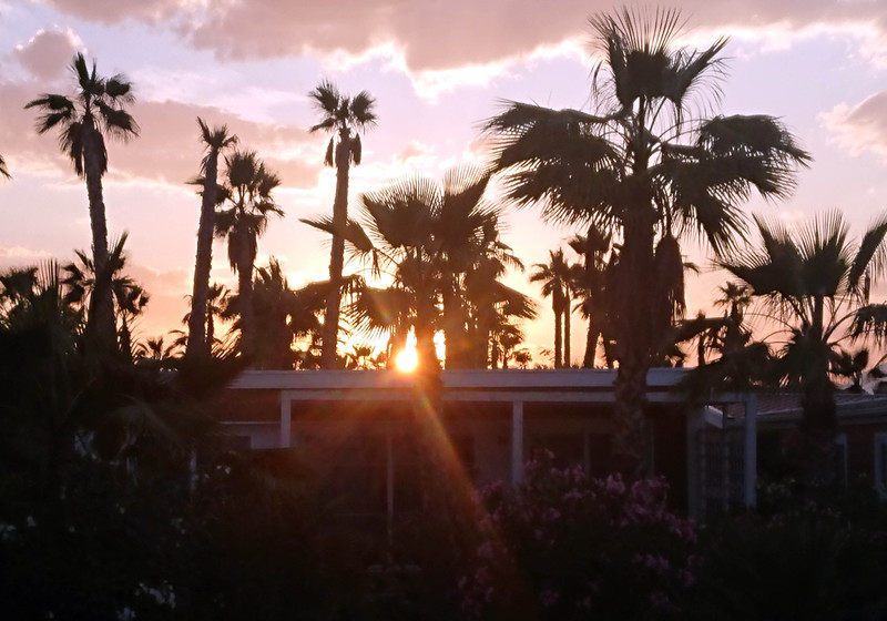 Die nächsten Tage kann man gut zusammenfassen. Der erste Radausflug führt uns nach Dolores zur Kaffeepause und anschließend in ein Naturschutzgebiet. Alles sehr flach und trocken. Die Straßen sind meistens langweilig. In dieser großen Ebene wird viel angebaut. Von Artischocken, Orangen, Zitronen, Oliven und Aprikosen ist jede Menge vorhanden. Das Besondere sind aber die Baumschulen mit total verknorzten Olivenbäumen und anderen exotischen Pflanzen, und natürlich Palmen in jeder Größe und Variante.
