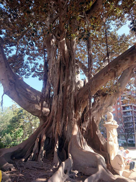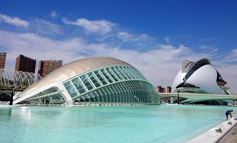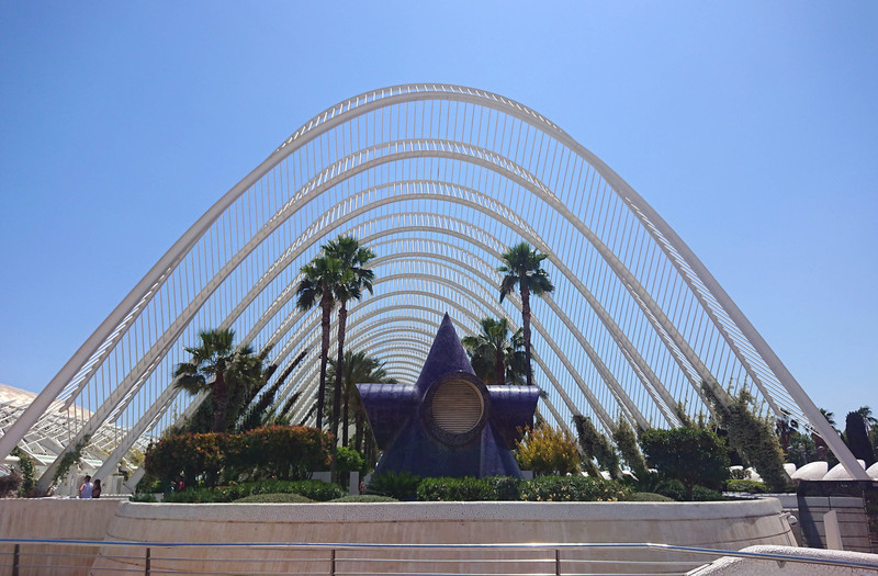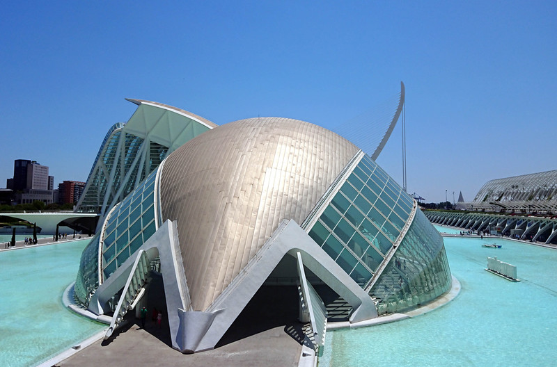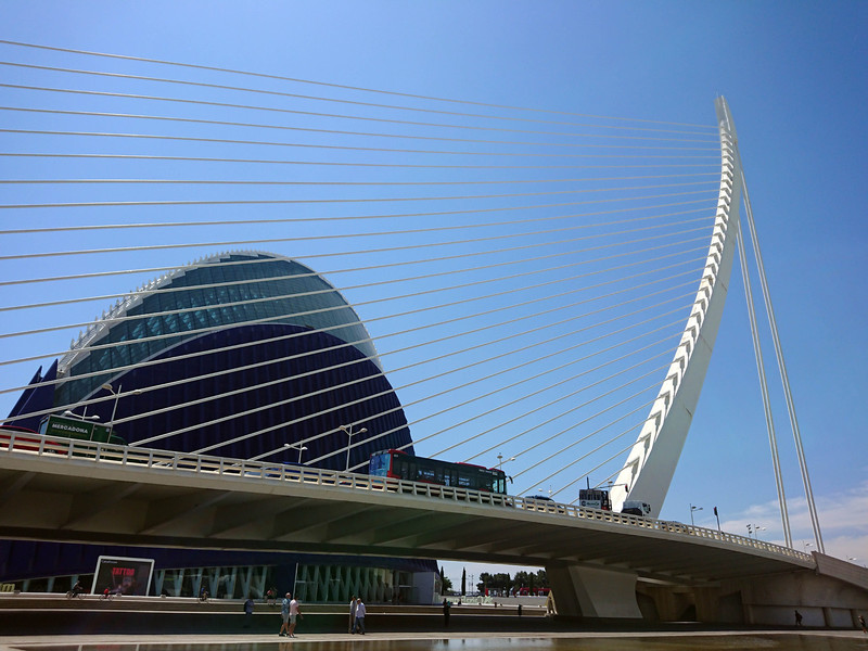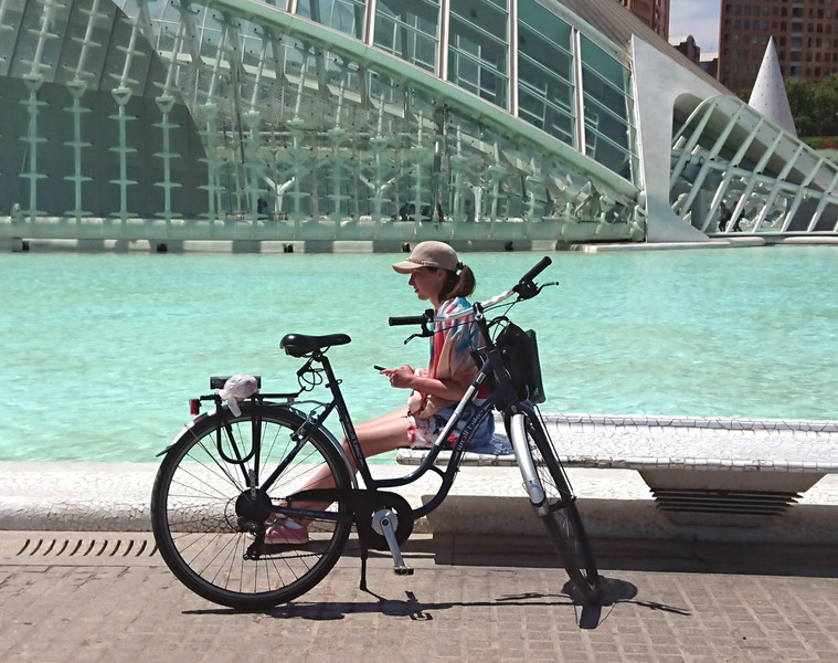 Der Campingplatz bei Valencia ist bedeutend kleiner als der vorige, was uns allen sehr gut gefällt. In der Nähe ist ein See und einmal die Straße überqueren, dann ist man in der Küsten- und Dünenlandschaft. Bis zum Hafen von Valencia sind es etwa 20 km. Es gibt sehr schöne Radwege in den Küstenwald- und Dünengebieten. Teilweise geht der Weg direkt am Strand entlang. Wir erreichen den Hafen und ab hier führen perfekte Radwege immer neben den Hauptstraßen entlang. Dann sehen wir das Museumsviertel mit der beeindruckenden modernen Architektur. Es werden die Räder abgestellt und jeder sieht sich die Gebäude an, die ihm am besten gefallen. Wir greifen uns die Räder und fahren durch die tollen Grünanlagen Richtung Innenstadt, ein traumhaftes Erlebnis.