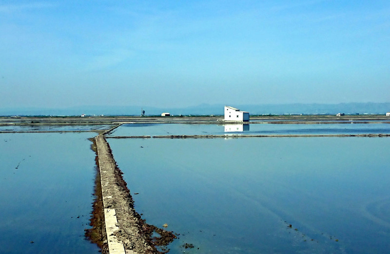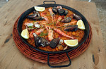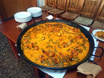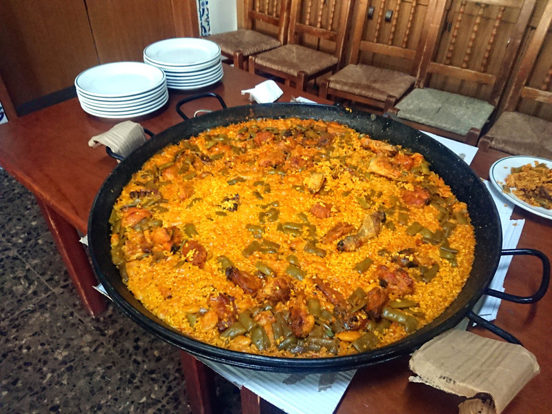 Nun steht noch eine Fahrt durch die Reisfelder zum Paella-Essen an. Reisfelder sind nicht sehr spannend anzusehen, aber zumindest sieht man auch hin und wieder Flamingos und Reiher. Im Lokal angekommen stehen die riesigen Paella-Pfannen bereits auf dem Herd. Nun wissen wir auch, wofür der viele Reis hin angebaut wird.
