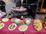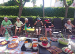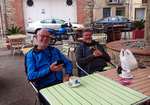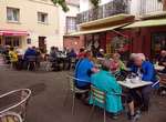 Dienstag haben wir Zeit bis 17 Uhr, da findet die Begrüßungs- und Vorstellungsrunde zur Reise statt. Also haben wir reichlich Zeit und starten Richtung Küste und dann nach Collioure. Als wir vor der Treppe zur Küste hinauf stehen, erinnern wir uns auch daran, dass hier ein Hindernis war. Dank Schiebehilfe schaffen wir es dort hinauf. Collioure ist sicher immer eine Reise wert, aber die Touristenmassen selbst jetzt im April erschrecken uns geradezu. Da machen wir einen schnellen Rundgang und trampeln dann den Berg wieder hinauf. Argeles-sur-Mer hat auch eine kleine Altstadt, die kennen wir noch nicht. Dort angekommen können wir uns ein Lokal für die Mittagspause aussuchen. Schnell entschieden sitzen wir unter der Markise und der Regen fängt an. Bei einem leckeren Burger und einer Paella lassen wir es uns gut gehen. Mit der Zahlung der Rechnung hört es zu regnen auf, so muss es sein. Um 17 Uhr treffen sich alle 30 Urlauber am Platz Nr. 156, jeder bringt seinen Stuhl und ein Glas mit. Für Getränke und einen Snack sorgen Cecile und Jeroen. Die Vorstellungsrunde verspricht eine fröhliche Reise, hoffentlich spielt das Wetter mit.
