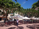 Wir haben uns für eine Besichtigung den Ort Xativa ausgesucht, etwas im Hinterland mit einer riesigen Festung auf dem Felsen und einer schönen Altstadt. Dort angekommen wird getankt und eingekauft. Von hier aus wären es etwa 1,5 km zu Fuß bis zur Altstadt. Rüdiger sucht in der Altstadt nach einem Parkplatz, die Adresse wird ins Navi eingegeben, dann geht es los. Bald landen wir in so engen Gassen, dass wir schon Angst um die Außenspiegel haben, also irgendwie raus aus der Stadt. Etwas außerhalb parken wir an der Straße, gehen einen Kaffee trinken, haben aber kein gutes Gefühl bei dem Parkplatz. Kurz entschlossen fahren wir weiter und kommen pünktlich um 14 Uhr in Oliva an. Das reicht für heute.