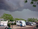 Zurück müssen wir uns dann beeilen, denn es zieht ein Unwetter auf. Die dunklen Wolken werden immer dichter und dann prasselt es laut und ausgiebig. Zum Glück haben wir früh genug die Markise eingekurbelt. In der Abenddämmerung klart es wieder etwas auf.