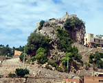 Freitag verabschiedet sich ein Teil der Mitreisenden. Einige der Verbliebenen wollen noch einen Ausflug machen und suchen sich einen Stausee in der Nähe aus. Rüdiger hat eine hoffentlich tolle Strecke durch das Hinterland ausgearbeitet. In Richtung der Kapelle von gestern fahren wir den Berg hinauf, biegen dann aber weiter ins Hinterland ab und erleben eine abwechslungsreiche Felsenlandschaft. Es geht zwar viel Berg auf, aber nach der Kuppe gibt es wie üblich auch eine grandiose Abfahrt. Und dann sehen wir in einem Tal den Ort Pratdip, den müssen wir uns näher ansehen. Mit Burg und Kirche auf einem Fels besteht der Ort nur aus steilen Straßen, wirklich beeindruckend.