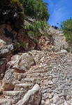 Das Naturschutzgebiet Desert de les Palmes ist einsam und landschaftlich sehr schön. Es geht 9 km den Berg hinauf, die Ausblicke entschädigen für die Anstrengung. Oben gibt es ein Kloster und etwas tiefer gelegen eine alte Klosterruine. Bis hierher ist die Straße erste Sahne, dann nehmen wir eine kleine Straße, die durch herrliche Mandel-, Orangen- und Olivenplantagen führt, allerdings auch viele Schlaglöcher hat. Da wir die Gegend genießen wollen, fahren wir sowieso langsam. Zurück am Campingplatz gehen wir in das dortige Restaurant und bekommen ein 3-Gänge-Menü für 12,90 €. Mit anderen Worten, das Leben ist in Spanien deutlich günstiger als in Frankreich. Die Tour hat uns so gut gefallen, dass wir sie am Dienstag noch einmal fahren wollen.