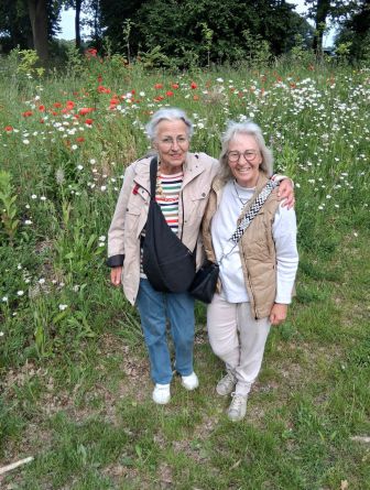 Die Sonne schein, wie schön! Richtung Reichswald wird es tatsächlich hügelig. Die Orte sind gepflegt wie überall in Holland, wir sehen uns einige Campingplätze an und fahren dann durch den Reichswald rauf und runter. Zurück am Camper sind wieder dicke Wolken da, die Räder schnell nachladen, denn morgen wollen wir wieder eine Tour fahren. Um 15 Uhr kommt Ilse und wir zwei machen eine ausgiebige Wanderung durch die Wiesen und Felder und landen dann bei einer Eisdiele mit leckerem Eis, mein erstes Eis in diesem Jahr.