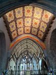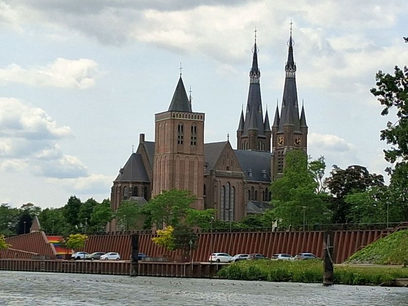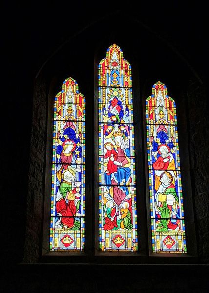 Die Kirche ist ein imposanter dunkler Steinbau in Form eines Kreuzes. Auch drinnen sind 4 Altarräume vorhanden, alle etwas anders gestaltet. Die Fenster sind teilweise alt und einige sehr modern. Nach der Besichtigung genehmigen wir uns noch einen richtig guten Kaffee, die Besichtigung des japanischen Gartens ersparen wir uns bei dem Wetter.