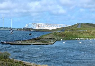 Nachdem heute der Wind mindestens so heftig ist wie gestern, verwerfen wir die geplante Tour durch das Hafengelände, denn wenn man erstmal mit der Fähre gefahren ist, gibt es kein Zurück mehr und man muss fast 60 km durchfahren. Also starten wir nochmal mit dem Dünenweg, schließlich ist der sehr schön, und schlängeln uns dann durch verschiedene Orte, bis wir am Rheinufer ankommen. Nun haben wir den Wind direkt von vorne. Wir besichtigen das „Keringhaus“, hier hat man eine Absperrung des Rhein gebaut, um bei Sturmflut etwas Entspannung zu haben.