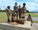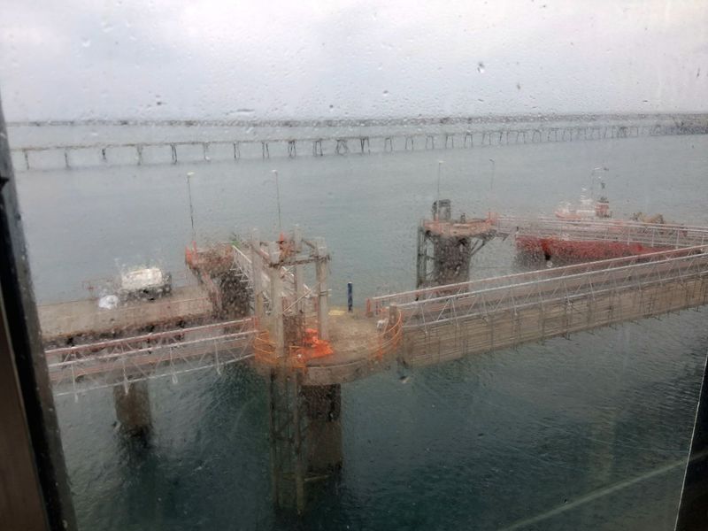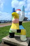 Es regnet seit 5 Uhr morgens und es ist kein Ende abzusehen. Da wir den Platz um 10 Uhr verlassen müssen, haben wir uns gestern schon angesehen, wo wir uns denn hinstellen können. Direkt am Hafen gibt es einen recht großen Parkplatz, das sollte klappen. Bei Nieselregen schauen wir auf den Rhein hinaus, dort tut sich nicht viel. Erst gegen Mittag sehen wir mal ein paar größere Schiffe. Etwas Bewegung muss sein. Am Strand gibt es einige Statuen, u.a. ein Denkmal an die Evakuierung der jüdischen Kinder nach Übersee. Dann gehen wir zum „Stena Line“-Check in. Und natürlich erwischt uns wieder ein heftiger Regen. Um 14 Uhr kämpfen wir uns in die andere Richtung bis zum „Unicum“ und bekommen dort eine Kleinigkeit zu essen, denn ehe es heute Abend das Begrüßungsessen gibt, wird es wohl 21 Uhr werden.
