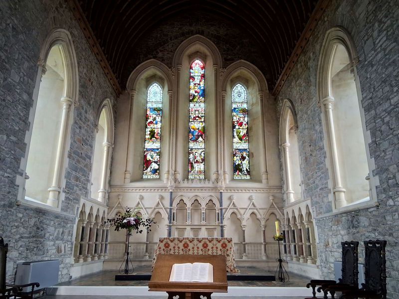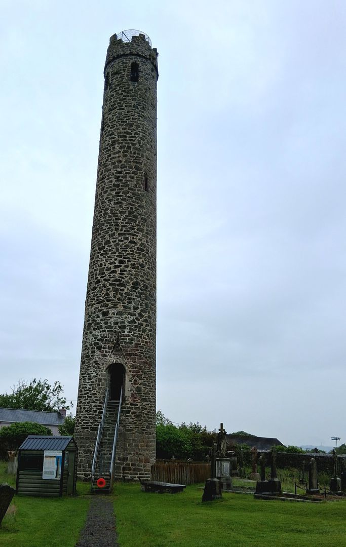 In der Nacht beginnt der große Regen, der auch den ganzen Vormittag anhält. Da wir erst ab 14 Uhr zum Campingplatz kommen wollen, haben wir uns als Abstecher den Ort Kildare ausgesucht. Obwohl es regnet, fahren wir in die Ortsmitte, denn dort gibt es eine sehr schöne alte Kathedrale und daneben einen der typisch irischen Rundtürme. Der erinnert uns eher an einen Schornstein, soll aber mal als Aussichtspunkt zur Feindbeobachtung gedient haben.