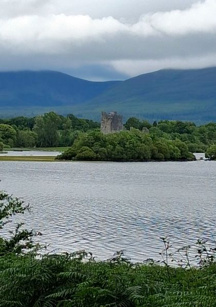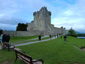 Es ist trübe, aber egal. Fahrräder raus und wir fahren in Richtung der Seen im „Killarney-Nationalpark“. Nur durch den Ort Killarney sind die Radwege nicht so richtig gut und man kämpft etwas mit den Autos. Aber dann geht es in einen Park, hier fahren auch Pferdekutschen die Gäste spazieren. Das „Ross-Castle“ ist das erste Highlight auf der Strecke. Heute am Sonntag sind auch viele Spaziergänger unterwegs.