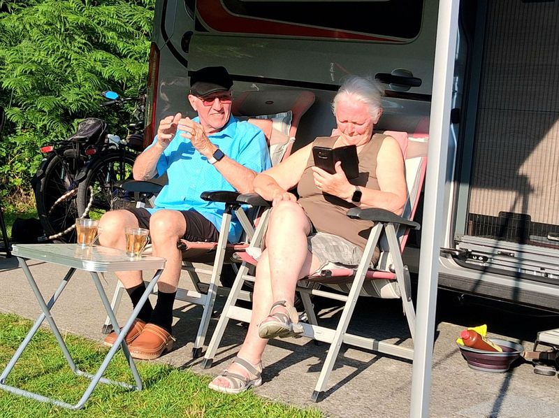 Das Wetter sieht recht gut aus und so starten wir zu der geplanten Rundtour um die vielen Seen bei Plasmolen. In Linden entdecken wir einen Hafen mit einem sehr schönen Campingplatz. Da holen wir uns doch gleich Infomaterial. Man kann die Plätze mit Seeblick mieten, nette Lokale sind auch da, was will man mehr. Die Radwege sind vom Feinsten und so geht die Tour völlig entspannt durch die Landschaft. In Cuijk gibt es noch einen Kaffee und mit der Fähre kommen wir wieder zurück Richtung Plasmolen. Dann bereiten wir uns auf die Weiterfahrt vor.