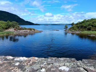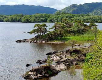 . Ab hier wird die Strecke richtig schön, es geht durch Wälder und an Seen entlang. Der Radweg ist bestens asphaltiert, sehr schön kurvig und auch leicht hügelig. Der Wald ist naturbelassen, wenn ein Baum umfällt, dann bleibt er eben liegen. Moos und Farne bedecken alles. An der „Muckross-Abbey“ vorbei umfahren wir auch den „Muckross-Lake“.