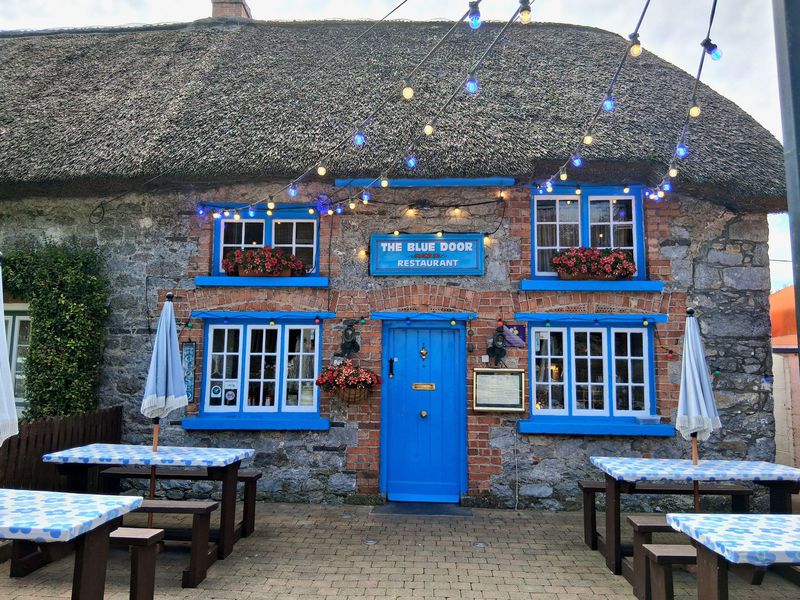 Wir besuchen nach der halben Strecke den Ort Adare. Hier gibt es viele schöne reetgedeckte Häuser und wieder eine riesige Kirche. Leider gibt es auch sehr viel Verkehr.