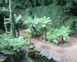Wir gehen als erste Gruppe auf das Gelände, dann beginnt hinter uns schon das Gedränge. Die alte Burg wird von vielen gestürmt, hier ist die besondere Attraktion ein Stein, den man küssen soll, allerdings nur mit viel Mühe. Das brauchen wir nicht, außerdem ist das Gartengelände riesig mit verschiedenen Vegetationsthemen. Wir erkunden den „Farngarten“, riesige Farne wie in einem Märchenwald. Weiter geht es über den „Himalayapfad“ zum „Blarney-Haus“.