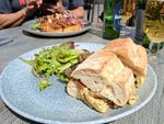 Aber da es Mittag ist, genehmigen wir uns etwas in einem netten Restaurant. Einziger Vermouthstropfen sind die vielen Dolen, die sehr lästig sind und gerne auf den Tischen herumspringen. Gabi und Jürgen kommen auch vorbei, setzen sich und dann passiert es, ein Vogel kackt Jürgen auf das Handy. Er hat die Nase voll von diesen Tieren.