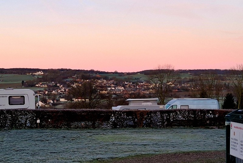 Der Blick morgens aus dem Camper lässt uns staunen. Die Sonne geht auf, der Himmel ist blau, das sieht richtig gut aus. Ausgiebig frühstücken, dann werden wir uns auf die Abfahrt vorbereiten. Da es sehr kalt ist, wollen wir erst nach 10 Uhr abfahren. Die Markise muss noch eingekurbelt werden und dann kommt die Überraschung, sie ist total vereist. Unsere Campingnachbarn geben uns den guten Tipp, es mal mit heißem Wasser zu versuchen. Es wird eine mühsame Arbeit. Nachdem der Rest erledigt ist, parken wir um, damit die Sonne etwas mithilft. Nach einer guten Stunde ist es dann geschafft und um 11:30 Uhr kommen wir endlich los.