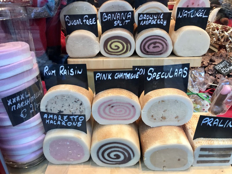 Daniel sehen wir Morgen wieder, heute Nachmittag ist zur freien Verfügung. Zum ersten Aufwärmen gehen wir in ein Café, zwei Cappuccino und 2 Waffen gönnen wir uns für sage und schreibe 37 €, Wucher! Wir bummeln noch etwas durch die Gassen, bewundern die unendlich vielen Schokoladengeschäfte und auf dem Weihnachtsmarkt ist das Gedränge so heftig, dass wir ausreißen.