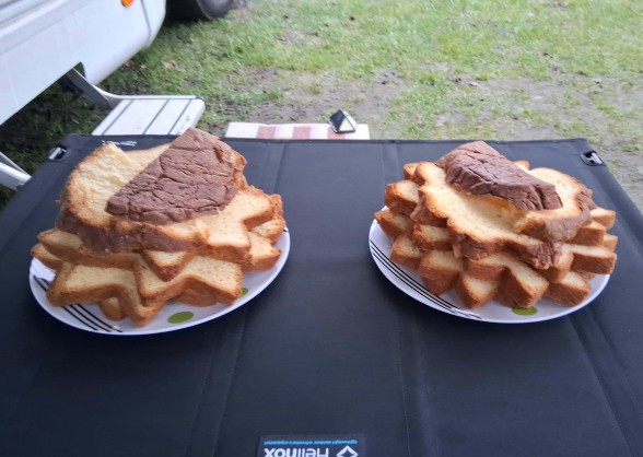 Außerdem bin ich inzwischen so durchgefroren, dass ich mich nur noch nach einer heißen Dusche sehne. So getan verbringen wir den Rest des Tages im warmen Camper und verteilen an alle, die an unserem Wagen vorbeikommen, ein Stück Panettone.