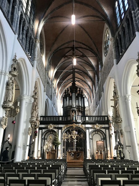 Der Regen hat mitten in der Nacht aufgehört, aber morgens ist der Campingplatz patschenass. Wir räumen alles zusammen und machen uns ganz langsam auf den Weg nach Hasselt. An Antwerpen kommen wir deutlich besser vorbei als auf der Hinfahrt und so kommen wir gegen 13:30 Uhr in Hasselt an. Raymond öffnet das Tor und fährt sein Auto hinaus. Dann wird unser Camper in die Einfahrt rangiert, Raymonds Auto wieder davor und das Tor wird verschlossen. Margriet hat den Kaffee schnell gekocht, wir nehmen einen kleinen Imbiss und erzählen erstmal, was alles im vergangenen Jahr passiert ist. Die Beiden haben mit ihrem Camper jede Menge Pech gehabt, neben einem Unfall – der Schaden ist immer noch nicht behoben – gab es auch noch ein paar Motorausfälle. Trotzdem haben sie auch gute Erinnerungen an ihre Urlaube. Nachmittags fahren wir mit dem PKW nach Hasselt, besichtigen ausgiebig die Altstadt von Hasselt incl. der sehr schönen Kirche.