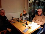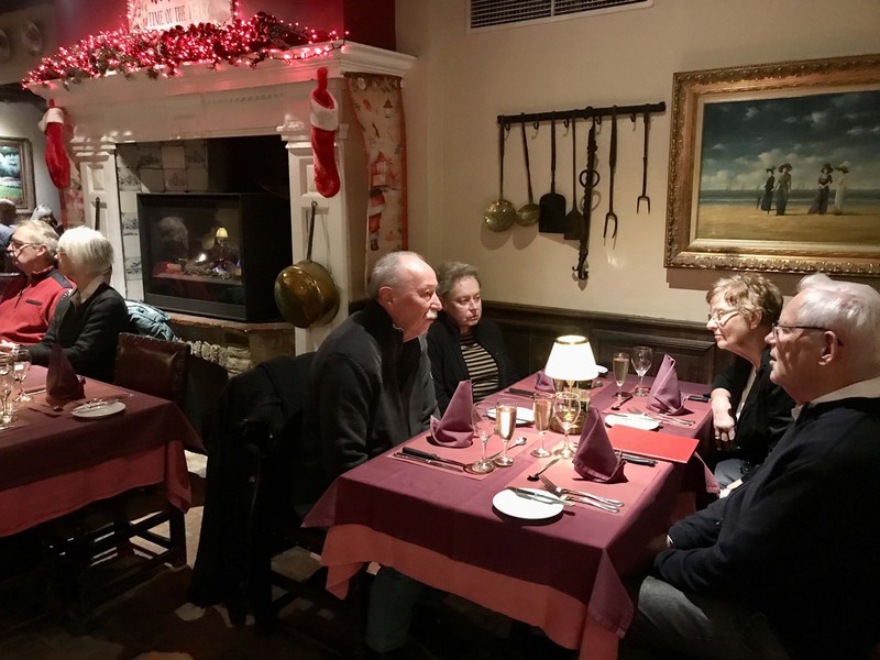 Nach der kurzen Begrüßung von Sabine mit Glühwein geht es nur ein paar Meter zum Essen in das Lokal „Vossesteert“. Die Vorsuppe – Gemüsesuppe – ist etwas dünn, dafür ist das Brot hervorragend, der Rindergulasch mit Salat und Pommes ist sehr lecker und auch der Nachtisch ist fein. So kommen wir total satt wieder auf dem Campingplatz an.