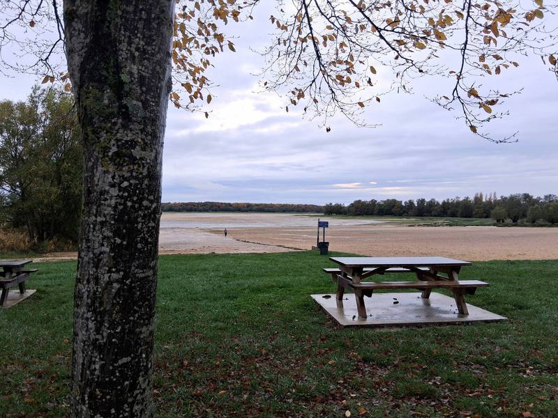 Um 9 Uhr verlassen wir Kriftel. Es ist trocken aber bewölkt. Durch das rheinhessische Hügelland haben wir noch die Hoffnung, dass die Sonne es schafft. Beim Überqueren der Grenze nach Frankreich wechseln wir am Steuer, ich fahre nach Frankreich rein und es beginnt zu regnen. Nach 2 Stunden machen wir eine Mittagspause, wechseln wieder den Fahrerplatz und Rüdiger schaltet den Starkregen an. Wir sind schon soweit, dass wir bis nach Tours weiterfahren wollen, um endlich die Nässe hinter uns zu lassen, aber die Strecke wird dann doch zu lang und so nisten wir uns in der Nähe von Troyes auf einem idyllischen Campingplatz ein. Der Regen wird weniger. Etwas Bewegung muss doch noch sein, so laufen wir in Richtung See. Es sind nur 500 Meter, dann sehen wir, dass hier ein sehr schönes Freizeitgelände ist, nur leider ist kein Wasser im See. Es kreisen Kraniche über dem Gelände und suchen ebenfalls das Wasser. Zurück am Camper prüfen wir das Regenradar für morgen und entscheiden uns, weiterzufahren.