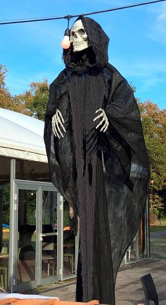 Wir fahren bei grauem Himmel los, umrunden großzügig Troyes und auf der Autobahn beginnt wieder der Regen. Alle ½ Stunde kommt für 2 Minuten die Sonne raus, dann wieder Wasser von oben. Ab 13 Uhr wird es etwas heller, wir steuern doch den Campingplatz in Tours an in der Hoffnung auf gutes Wetter am Montag. Der Platz ist parkähnlich angelegt und hat sogar ein Lokal. Dort haben wir für heute Abend einen Tisch reserviert. Gestern an Halloween muss hier richtig viel los gewesen sein, die Gerippe und Totenköpfe überall haben auch heute noch ihre Wirkung.