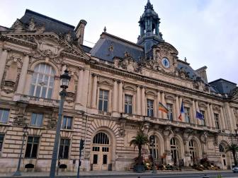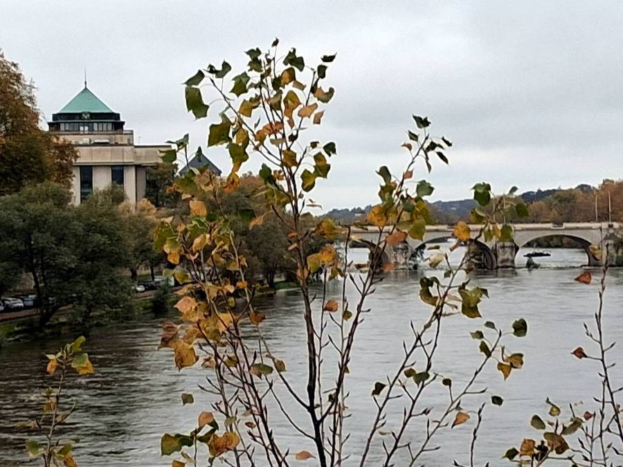 Heute soll es mal nicht regnen. Wir haben Bewegungsdrang, packen die Fahrräder aus und nehmen den "Loire"-Radweg, erstmal Richtung Amboise. Dann kommt ein kleiner Anstieg und wir wechseln in das "Cher"-Tal. Auch der Fluss ist nicht begradigt und führt viel Wasser. Dann erreichen wir Tours, durch einen schönen Park geht es am Bahngelände entlang. Das erste schöne Gebäude, das wir sehen, ist das Rathaus.
