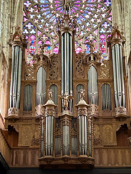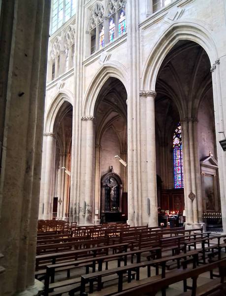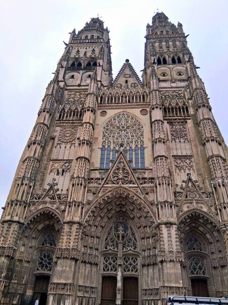 Durch schmale Gassen fahren wir Richtung "Loire" und dann sehen wir die Türme der Kathedrale. Sie ist riesig, hat aber keinen schönen Vorplatz. Für ein Café ist es doch twas zu kühl, deshalb machen wir uns auf den Heimweg, nun wieder an der "Loire" entlang. Das war die erste Radtour dieses Urlaubs.