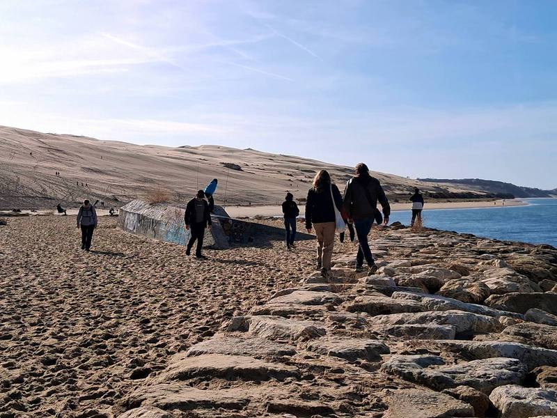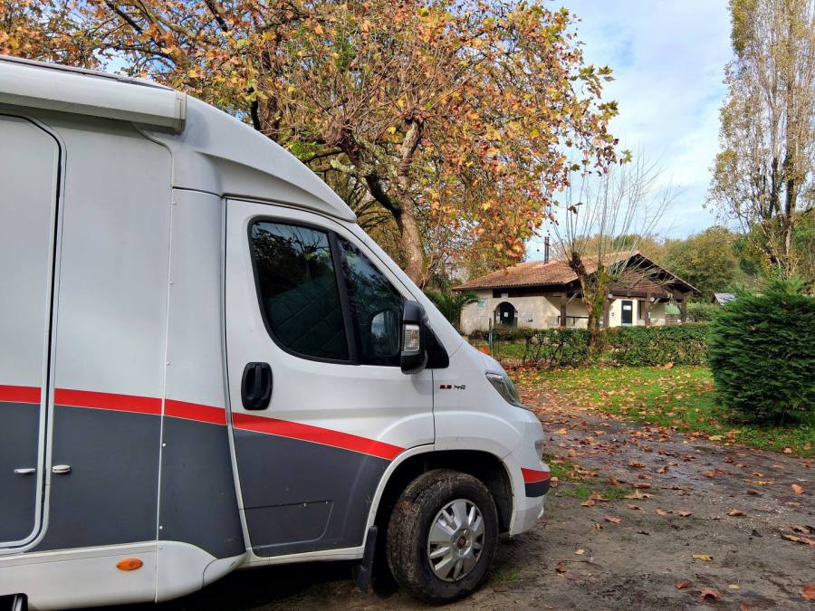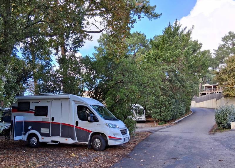 Morgens starten wir bei Nebel, in dieser Nacht hat es mal nicht geregnet, aber die Luft ist feucht. Richtung Bordeaux nimmt der Verkehr stark zu, es ist gut, dass wir am Wochenende fahren, denn den Berufsverkehr möchten wir nicht erleben. Die Sonne zeigt sich allmählich, es sind auch viele Wochenendausflügler unterwegs. Zum Campingplatz geht es durch Wohnstraßen den Berg hinauf, wir bekommen den letzten freien Platz, der reicht uns, der nächste Camper muss sich eine andere Bleibe suchen.