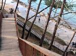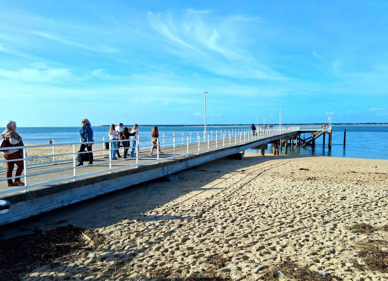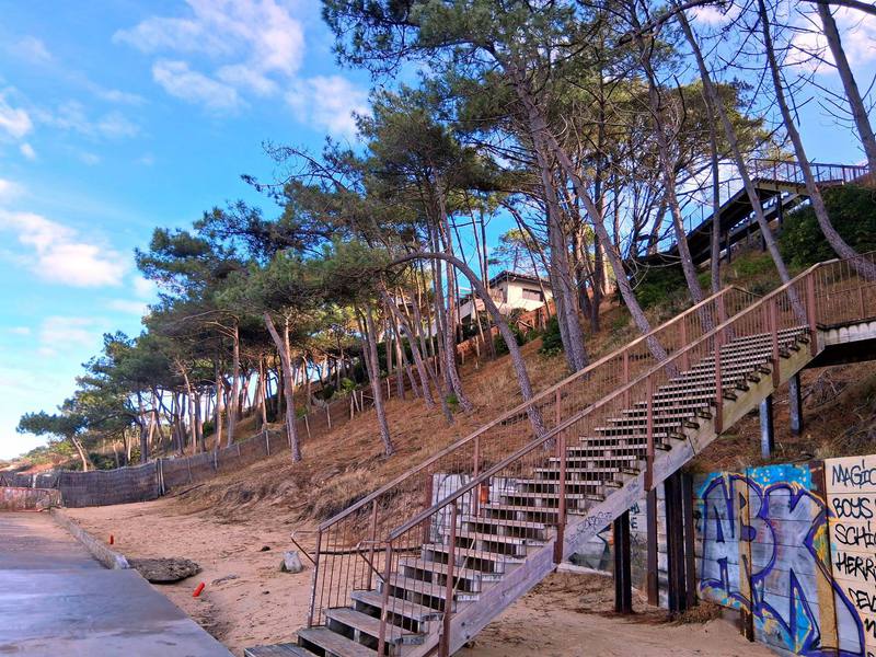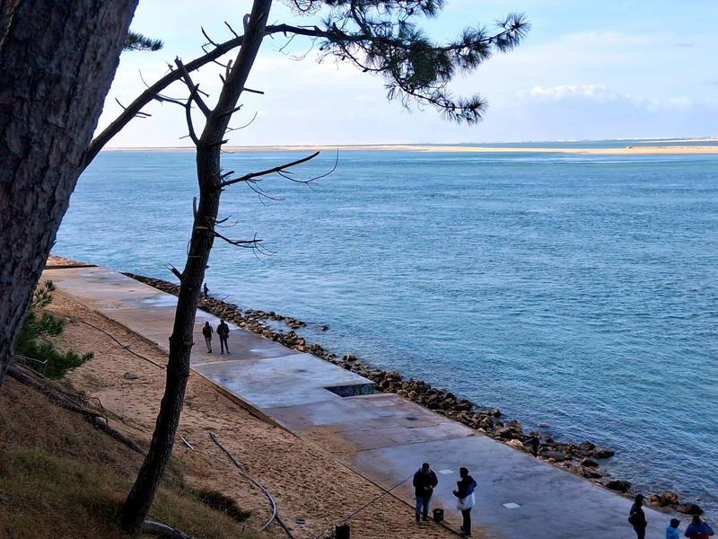 Dann geht es immer an der Küste entlang durch die Wohnviertel der Sommerstadt Arcachan. Der Stadtstrand sieht richtig gut aus und die Radwege sind bestens angelegt. Dann kommen wir zu einer Seebrücke, trinken einen total überteuerten und schlechten Kaffee und entscheiden, dass wir hier nicht essen gehen. Weiter Richtung Hafen wird es etwas ruhiger, dann Richtung Campingplatz geht es den Berg hinauf durch die Villen der Winterstadt. Man könnte jedes 2. Haus ablichten, so schön sind die Villen. Zurück auf „Huttopia“ beschließen wir aber, morgen weiterzufahren, da der Platz für diese Jahreszeit zu schattig ist. Aber merken muss man sich die Adresse trotzdem.