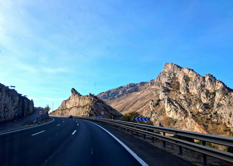 In der Nacht war der Sturm so heftig, dass wir häufig wach geworden sind. Morgens sieht es noch genauso aus, da wollen wir nicht mit den Rädern an der Küste entlangfahren. Also packen wir alles ein und fahren bei Sturm und Sonnenschein Richtung Burgos. Es ist extrem mild, selbst in den Bergen sind es 19 Grad.