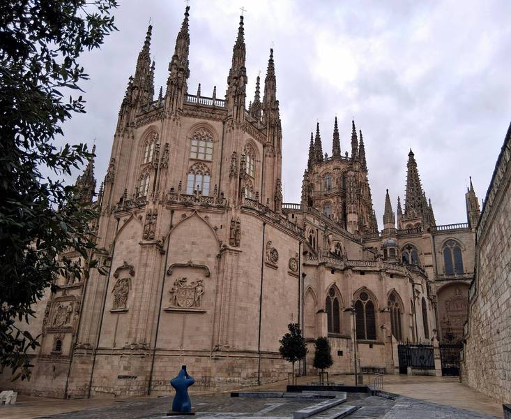 So ein Ärger, es regnet wieder. Aber gegen 11 Uhr hört es auf und etwas Bewegung muss sein. Also radeln wir einfach nur Richtung Burgos. Nach Überqueren des Flusses fahren wir in die Stadt hinein, nicht besonders schön und viel Verkehr. Irgendwann erreichen wir das Zentrum, enge Gassen und viele Läden.